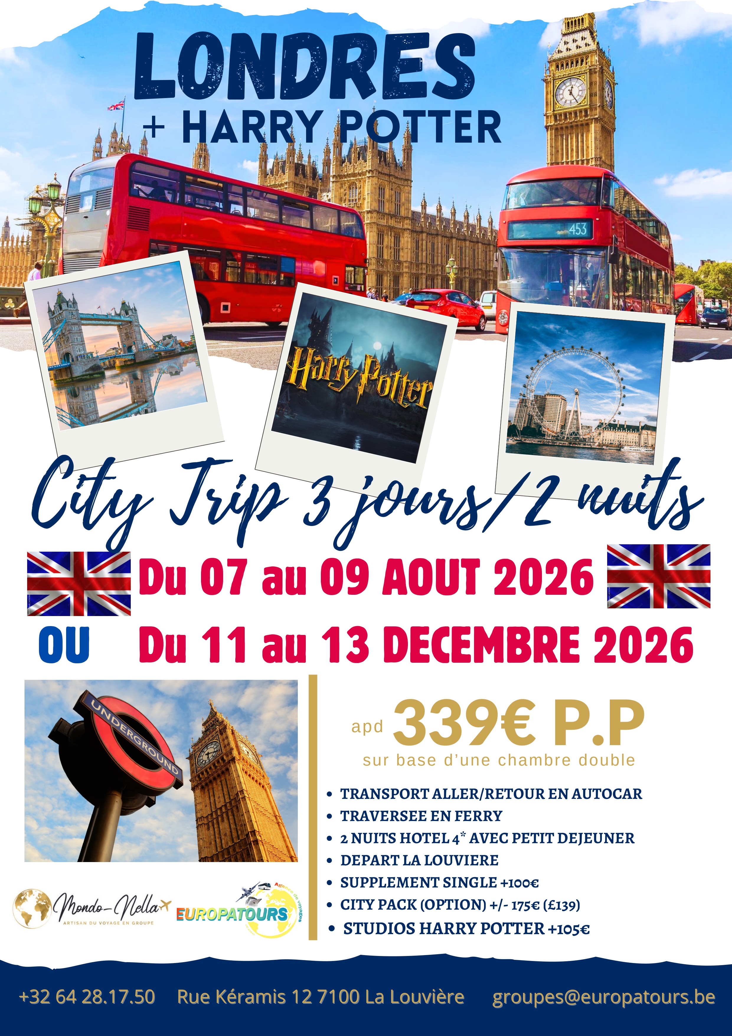 City trip à Londres avec traversée ferry/shuttle, hôtel 4* et option Harry Potter.