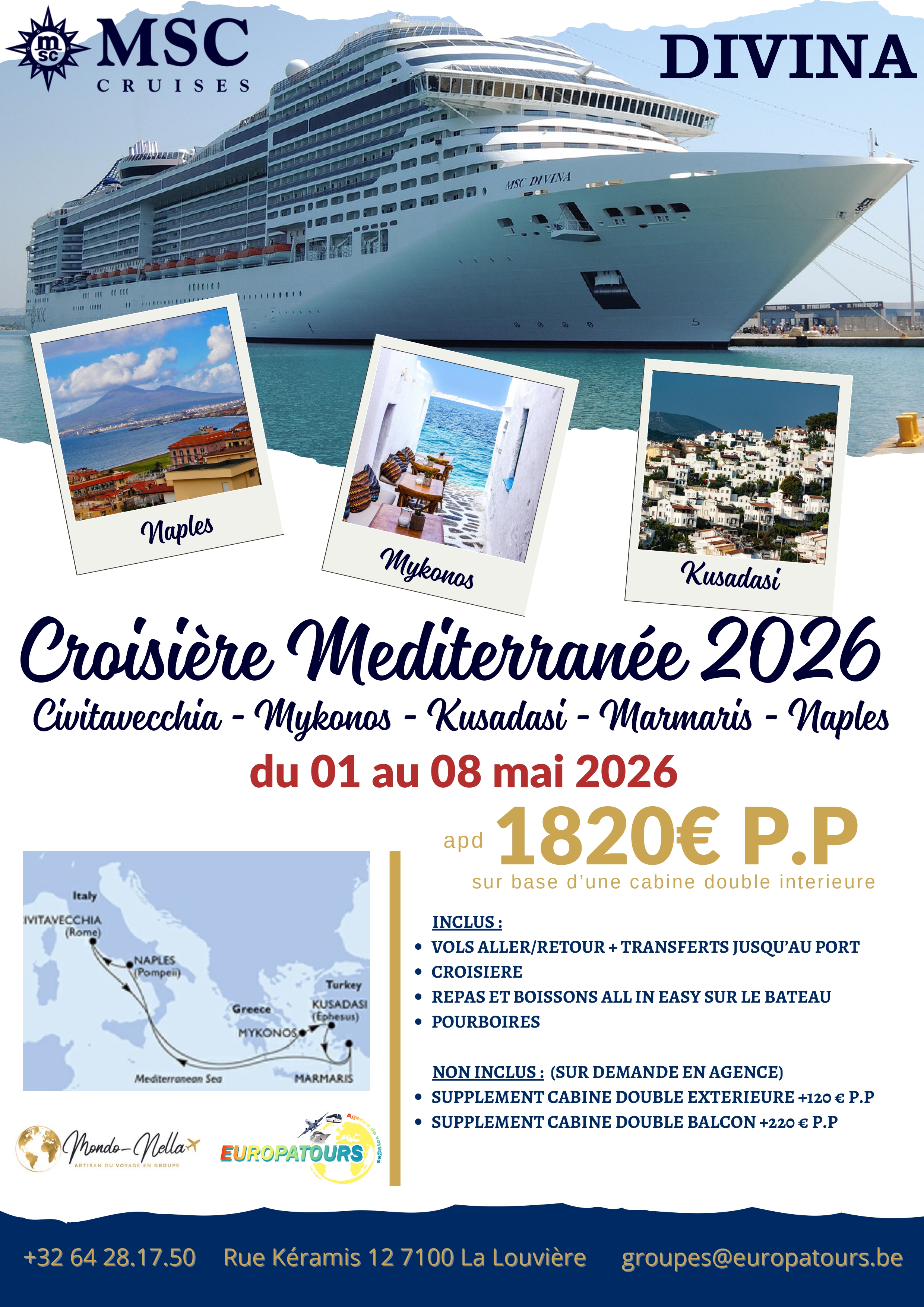 Croisière de 8 jours en Méditerranée avec vols, transferts et formule all inclusive easy à bord.